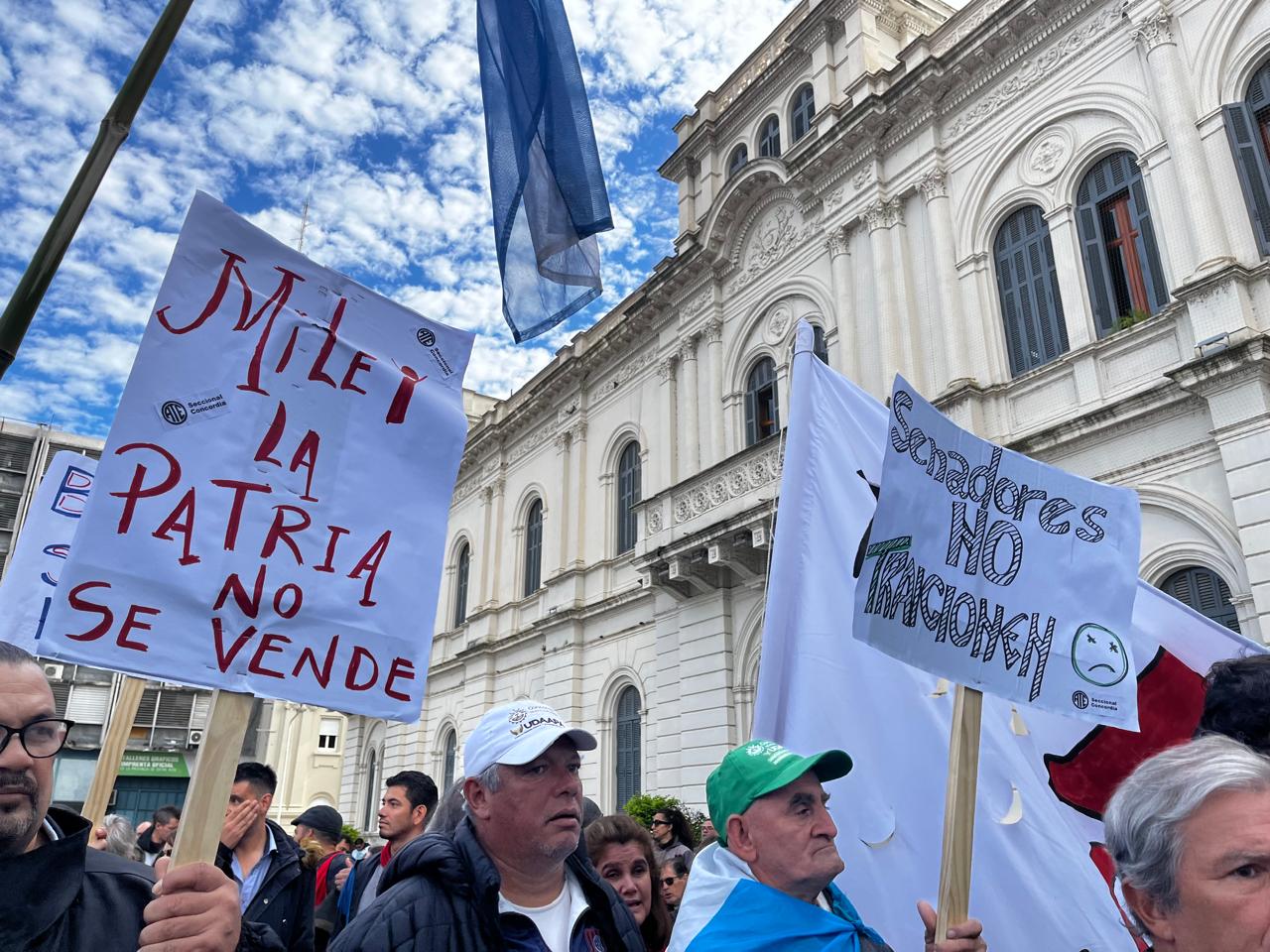 – Este jueves se movilizaron gremios, agrupaciones sociales y estudiantiles en el segundo paro general que convocó la CGT • Además de las consignas en contra de las políticas de Milei, los presentes apuntaron al gobernador de Entre Ríos y a los diputados nacionales que votaron a favor de la Ley Bases